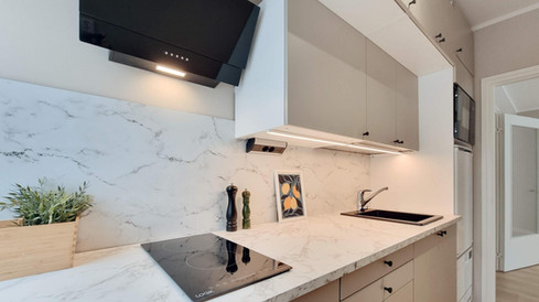 ✅ Keittiö on toteutettu toimivaksi vaativammallekin kokkaajalle. keittiö sis. astianpesukone, induktioliesi, uuni, liesituuletin, himmennettävä led-valaistus, jääkaappi (erillinen pakastin on sijoitettu vaatehuoneeseen).