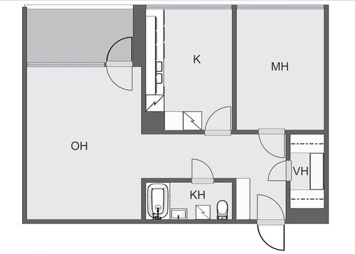 Kerrostalo 54,5m2 / 2H + keittiö + vaatehuone + lasitettu parveke Kerrostalo 55m² / 2H + K + VH + Parveke
