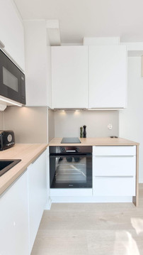 ✅ Keittiö on toteutettu toimivaksi vaativammallekin kokkaajalle. Keittiöön mahtuu neljän hengen ruokaryhmä. /keittiö sis. integroidut kodinkoneet (astianpesukone, liesi, uuni, liesituuletin), hiljentimet saranoissa ja vetolaatikoissa, jääkaappipakastin.